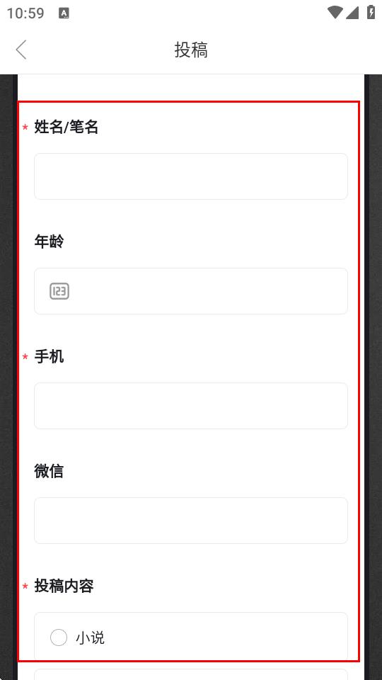 3、進(jìn)入投稿頁(yè)面后,按照要求填寫個(gè)人信息,以及選擇投稿內(nèi)容的類型。