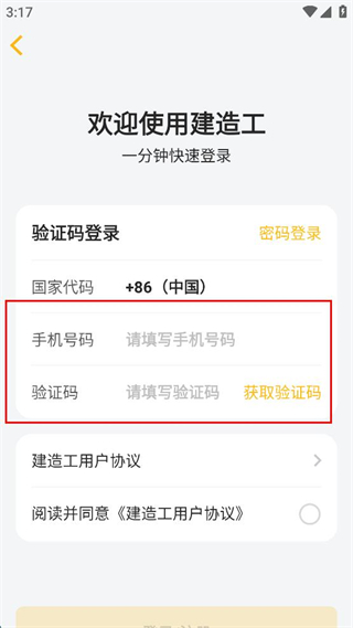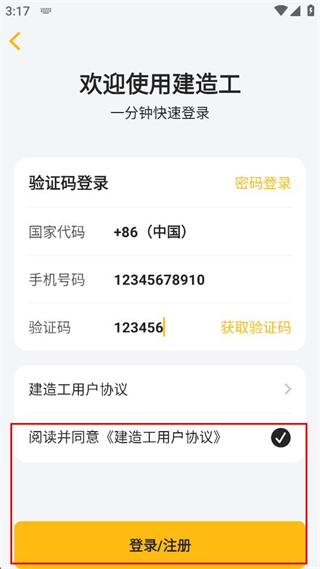 4、勾選閱讀并同意建造工用戶協(xié)議,點(diǎn)擊登錄/注冊(cè)。