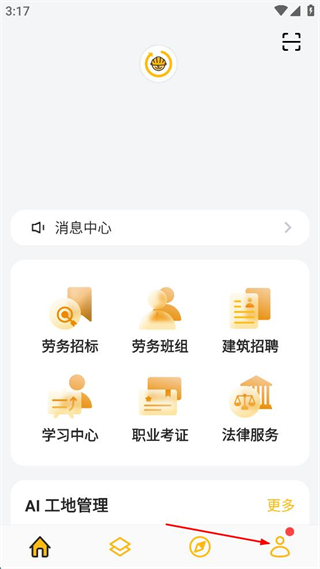 1、打開建造工APP,點(diǎn)擊首頁右下角我的。