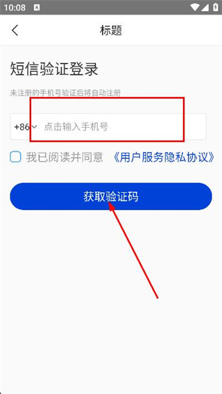2、在短信驗證登錄頁面,點擊輸入框填寫手機號,并獲取驗證碼。