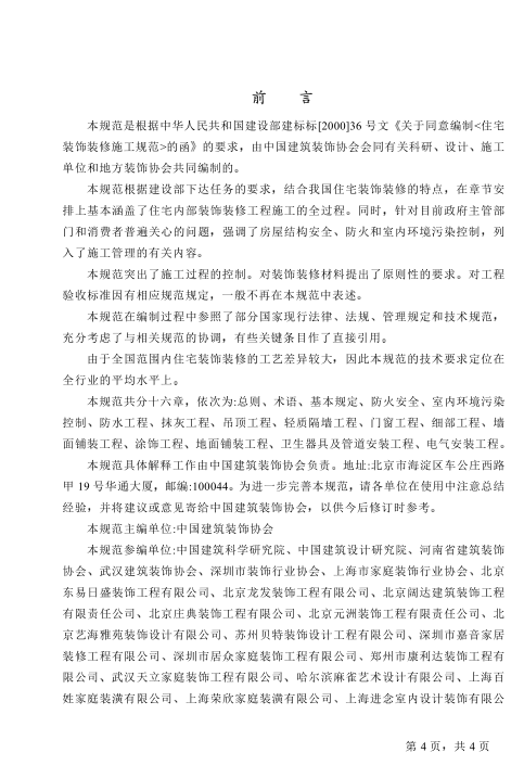 1.0.1 為住宅裝飾裝修工程施工規(guī)范,保證工程質(zhì)量,保障人身健康和財(cái)產(chǎn)安全,保護(hù)環(huán)境,維護(hù)公共利益,制定本規(guī)范。