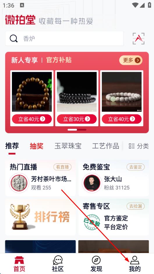 1、打開微拍堂APP,點擊底部導(dǎo)航欄中的我的。