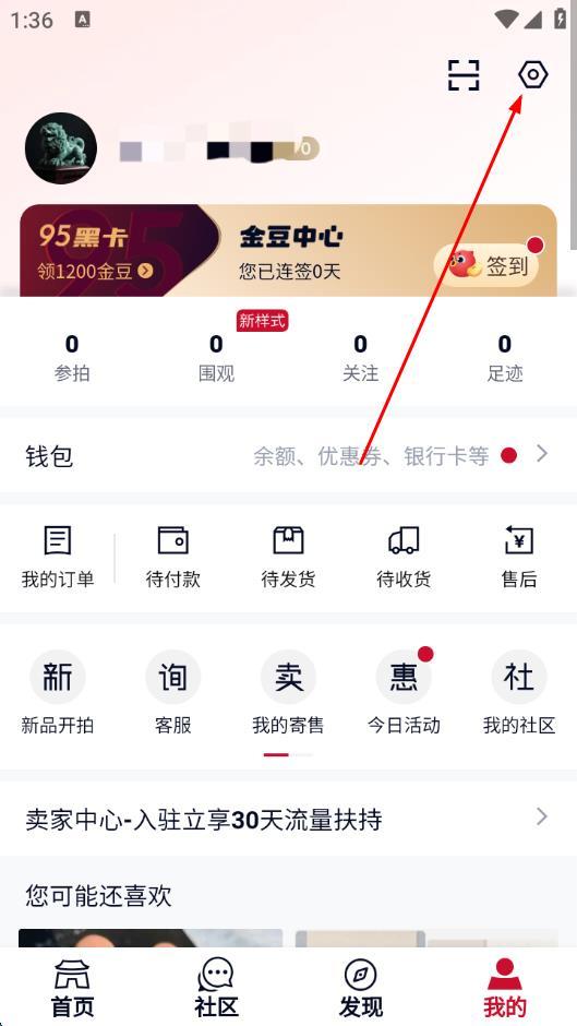 2、在我的頁面,點擊右上角的設(shè)置圖標(biāo)。