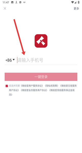 2、在進(jìn)入到登錄頁面中,需點擊輸入框填寫手機號進(jìn)行登錄。