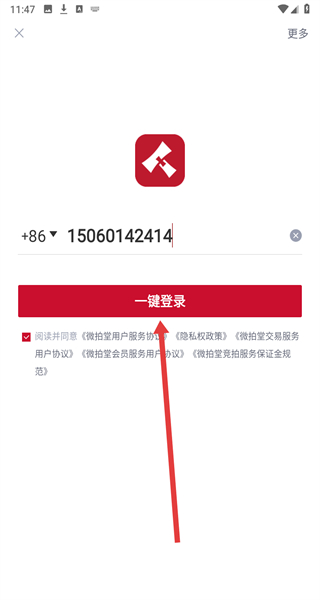 3、在填寫好手機號后,點擊一鍵登錄按鈕,進(jìn)行登錄。
