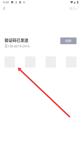4、在跳轉(zhuǎn)到驗證頁面中,點擊方框輸入獲取到的驗證碼后,即可完成登錄操作。