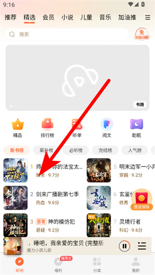 2、隨后,進(jìn)入到首頁(yè)就能看到豐富的書(shū)本,隨手點(diǎn)擊都能免費(fèi)收聽(tīng);
