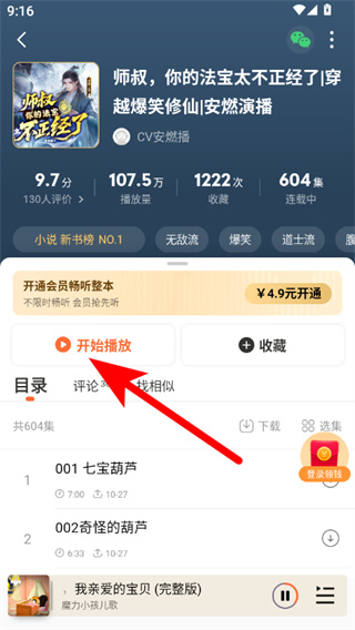 3、接著,點(diǎn)擊進(jìn)入找到【開(kāi)始播放】,任何狀態(tài)下都能直接收聽(tīng)書(shū)本;