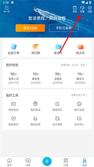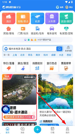 1、打開攜程旅行app,點擊底部導航欄中的我的選項。