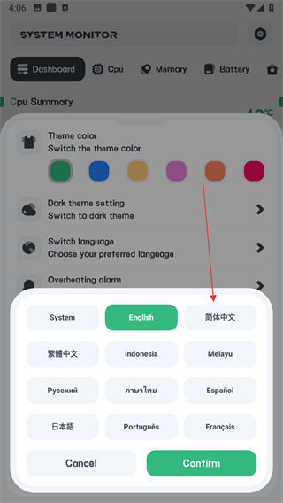 3、在語言選擇彈窗中,點(diǎn)擊簡體中文選項(xiàng)。