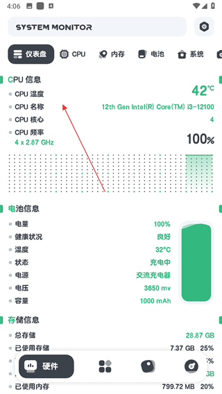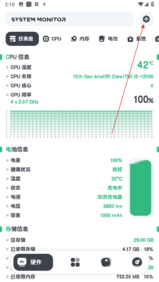 支持CPU小部件、內(nèi)存小部件、電池小部件。