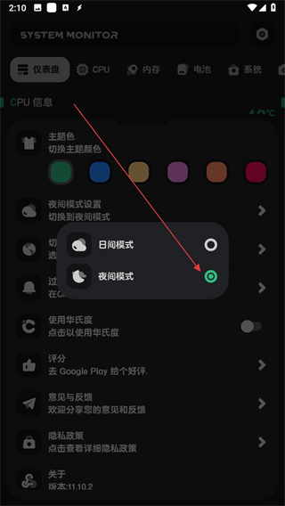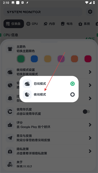 3、在模式選擇窗口中點(diǎn)擊夜間模式選項(xiàng)。