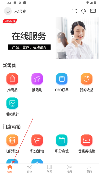 1、進(jìn)入APP銷售頁(yè)面,使用在線服務(wù)咨詢產(chǎn)品營(yíng)養(yǎng)活動(dòng),通過(guò)新零售功能推商品推活動(dòng),查詢O2O訂單我的收益,借助活動(dòng)統(tǒng)計(jì)門店動(dòng)銷工具,開(kāi)展銷售工作。