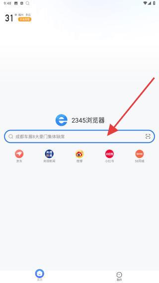 1、進入個人界面:點擊界面搜索的那一欄,點擊后即可跳轉(zhuǎn)頁面。