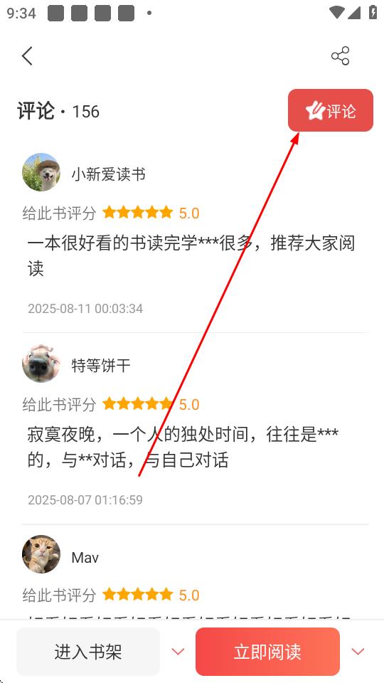 2、進入書籍詳情頁面后,下拉點擊評論區(qū)右上角的評論按鈕。