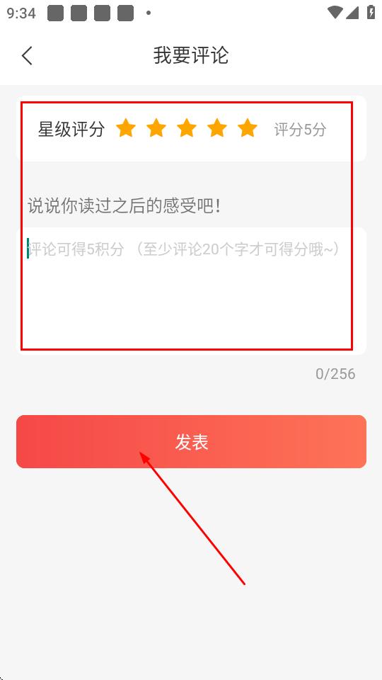 3、在我要評論頁面,進行星級評分,在下方文本框輸入對書籍的評價內(nèi)容,點擊發(fā)布。