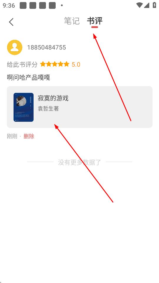 5、點擊書評頁面,即可查看到自己發(fā)布的書籍評價。