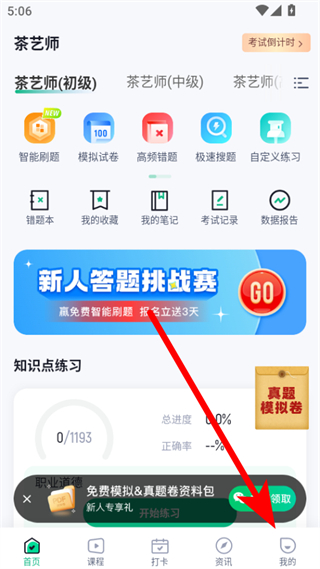 1、打開茶藝師APP,點(diǎn)擊右下角的我的選項(xiàng),進(jìn)入個(gè)人中心頁面。