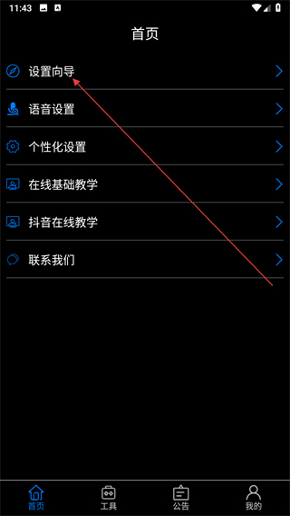 1、打開保益悅聽APP,在首頁點(diǎn)擊設(shè)置向?qū)нx項(xiàng),進(jìn)入設(shè)置向?qū)ы撁妗?