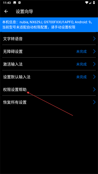 2、在設(shè)置向?qū)ы撁嬲业綑?quán)限設(shè)置幫助選項(xiàng),點(diǎn)擊進(jìn)入權(quán)限設(shè)置幫助頁面。