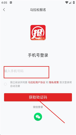 3、在手機號登錄頁面,輸入手機號,并獲取驗證碼。