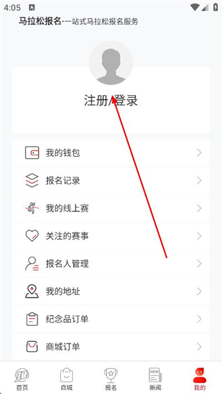 1、打開馬拉松報名APP,點擊底部導(dǎo)航欄我的選項。