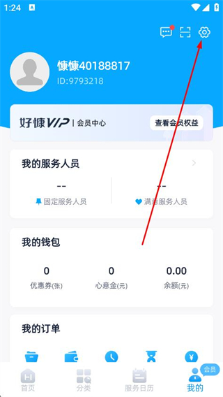 2、在我的頁面中,找到并點(diǎn)擊右上角的設(shè)置圖標(biāo)。