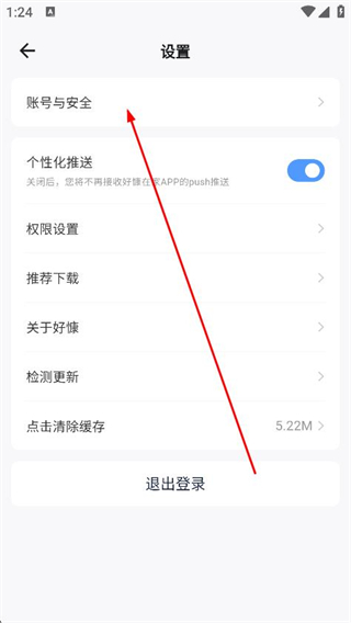 3、進(jìn)入設(shè)置頁面后,找到并點(diǎn)擊賬號與安全選項(xiàng)。