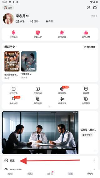 2、在我的頁面內(nèi),找到并點擊設(shè)置的功能按鈕。