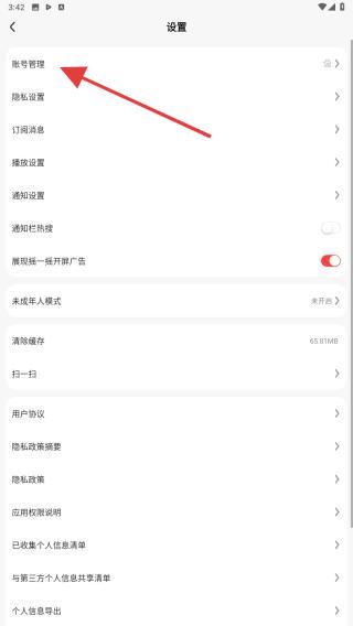 3、進入設(shè)置的頁面內(nèi),點擊賬號管理的按鈕。