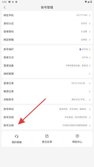 4、在賬號管理的界面內(nèi),向下滑動找到并點擊賬號注銷的按鈕即可。