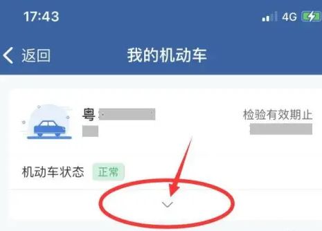 3、在我的機(jī)動(dòng)車(chē)車(chē)輛狀態(tài)中點(diǎn)擊下方的【箭頭】打開(kāi)更多彈窗;