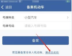 4、進(jìn)行機(jī)動(dòng)車(chē)備案,選擇右下角的【非本人機(jī)動(dòng)車(chē)】備案點(diǎn)擊處;