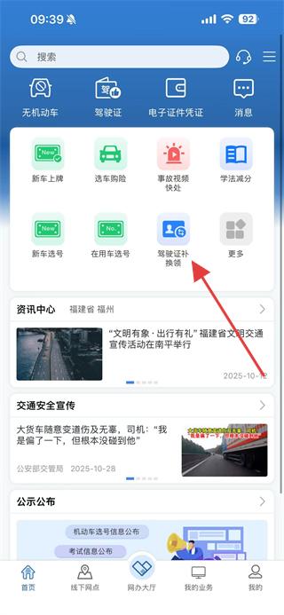 1、打開(kāi)交管12123應(yīng)用,在首頁(yè)點(diǎn)擊駕駛證補(bǔ)換領(lǐng)選項(xiàng)。