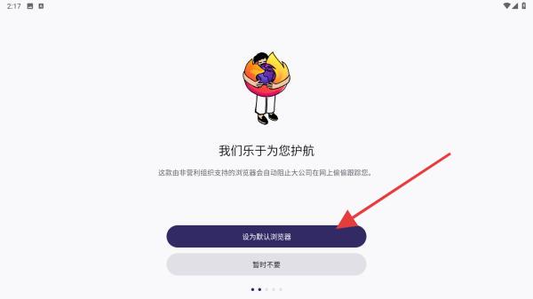 2、默認(rèn)瀏覽器設(shè)置:進(jìn)入設(shè)為默認(rèn)瀏覽器頁(yè),可選設(shè)為默認(rèn)瀏覽器,系統(tǒng)級(jí)設(shè)置或暫時(shí)不要,后續(xù)可在設(shè)置里修改。