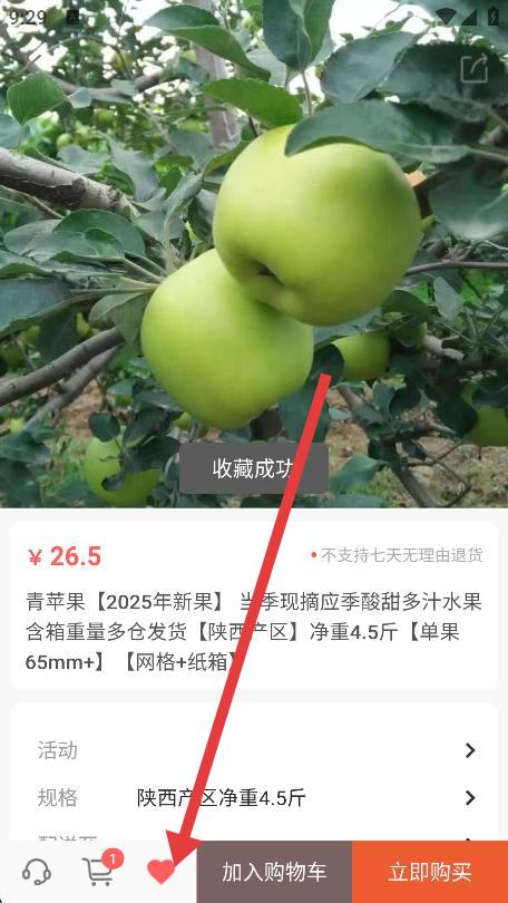 4、在商品詳情頁(yè)面,點(diǎn)擊心形的收藏按鈕,即可成功收藏該商品。