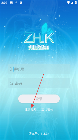1、打開(kāi)知康在線(xiàn)APP,在登錄界面點(diǎn)擊注冊(cè)賬號(hào)選項(xiàng)。
