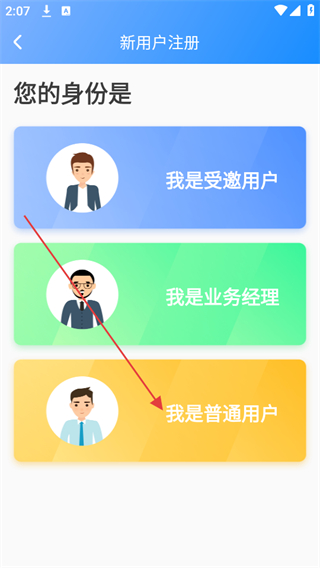 2、進(jìn)入新用戶(hù)注冊(cè)頁(yè)面,選擇您的身份。