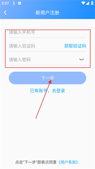 3、輸入手機(jī)號(hào)、驗(yàn)證碼,再設(shè)置密碼,點(diǎn)擊下一步,即可完成注冊(cè)。