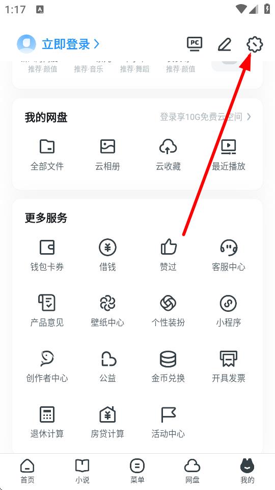 2、在我的頁面中,點擊右上方的齒輪設(shè)置圖標。