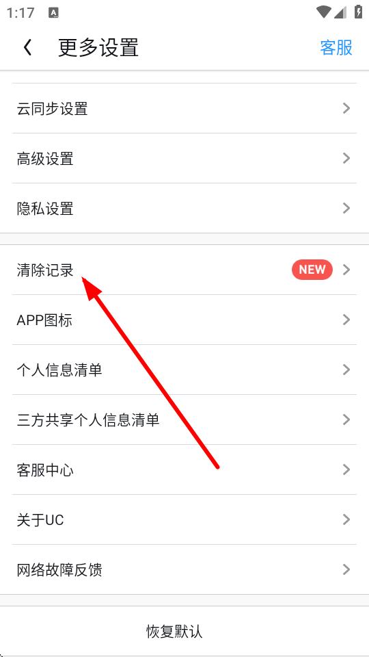 3、進入設(shè)置頁面后,找到并點擊清除記錄選項。