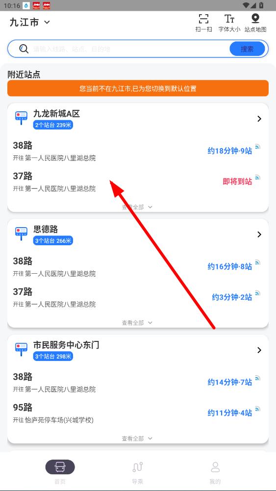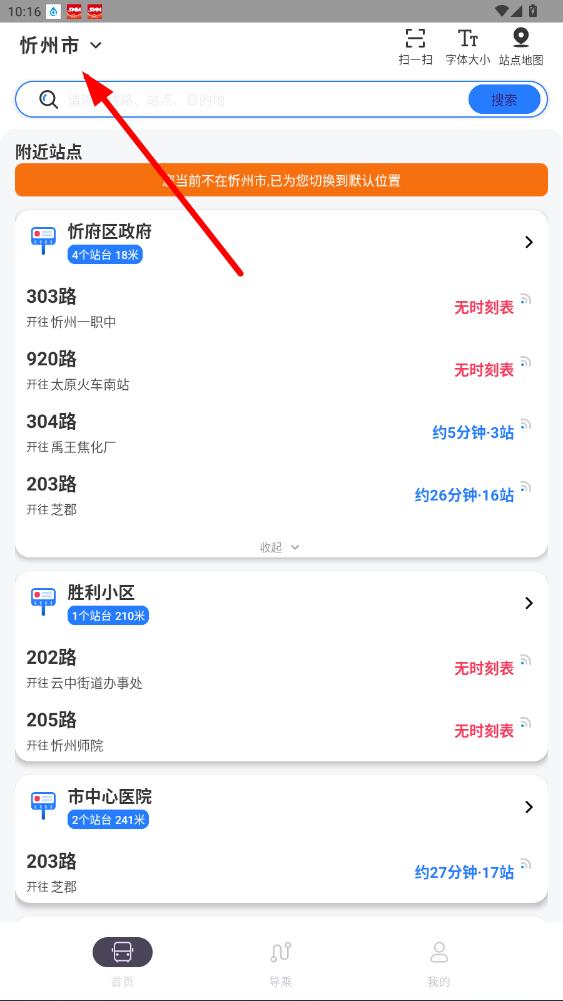 4、選擇好后,返回首頁,可查看該城市附近站點及相關(guān)公交線路信息。