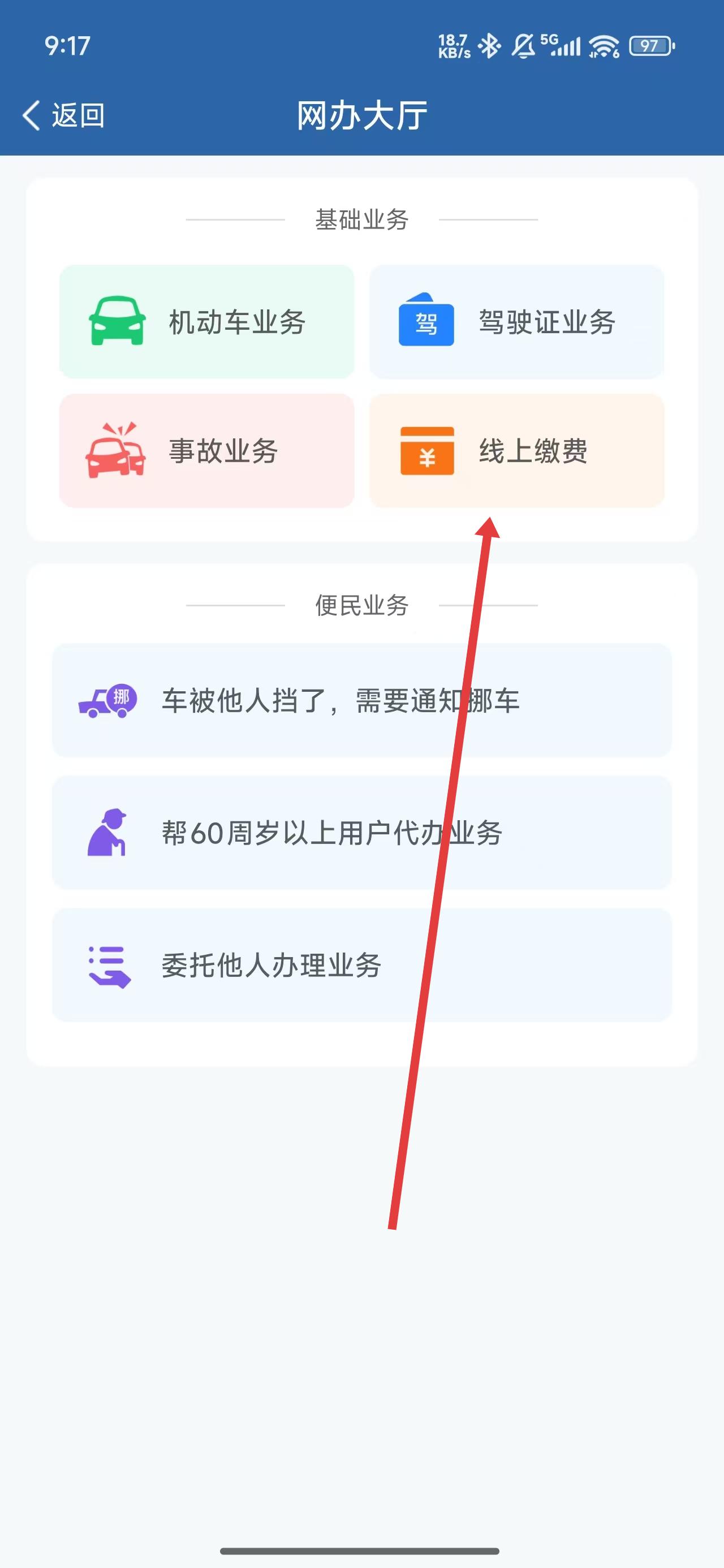 2、在網(wǎng)辦大廳頁面中,可以點擊線上繳費按鈕,準備進行繳費操作。