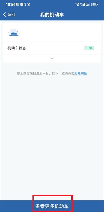 2、在此備案中我們可以點(diǎn)擊下方的【備案更多機(jī)動(dòng)車】去進(jìn)行非本人的機(jī)動(dòng)車備案操作;