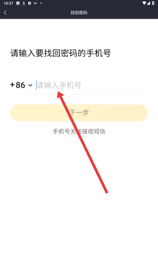 2、進(jìn)入找回密碼頁面后,在手機(jī)號輸入框填寫需找回密碼對應(yīng)的號碼,確保信息準(zhǔn)確,為后續(xù)驗(yàn)證做準(zhǔn)備。