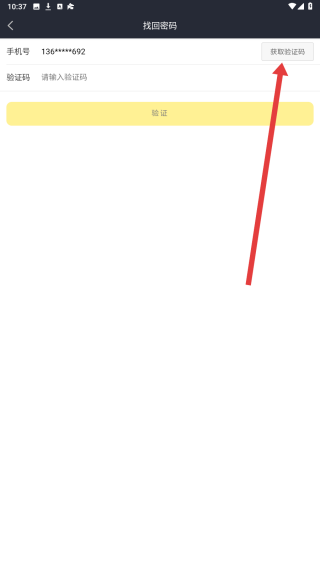 3、輸入手機(jī)號后,點(diǎn)擊獲取驗(yàn)證碼按鈕,等待接收短信驗(yàn)證碼,用于后續(xù)密碼重置的身份驗(yàn)證步驟。