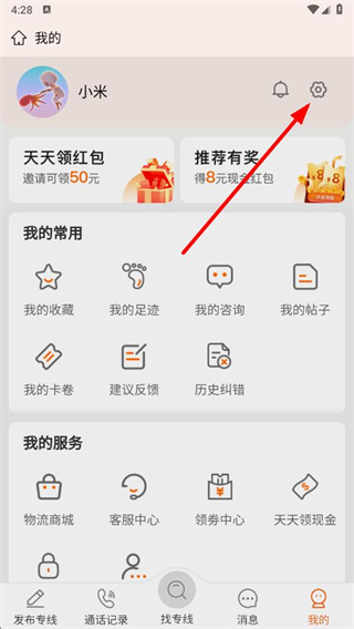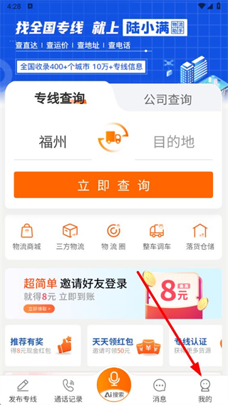 1、在陸小滿物流助手app首頁,點(diǎn)擊右下角我的按鈕,進(jìn)入個(gè)人頁面。