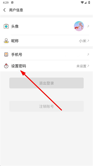 3、在用戶信息頁面中,找到設(shè)置密碼選項(xiàng)并點(diǎn)擊進(jìn)入。