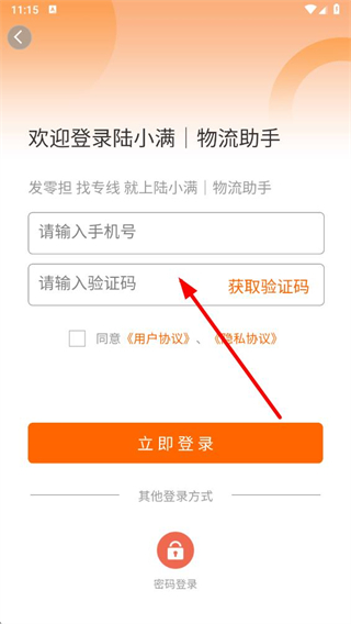 4、在驗(yàn)證碼登錄頁面,輸入對應(yīng)手機(jī)號(hào),點(diǎn)擊獲取驗(yàn)證碼輸入,勾選協(xié)議,點(diǎn)擊立即登錄完成操作。
