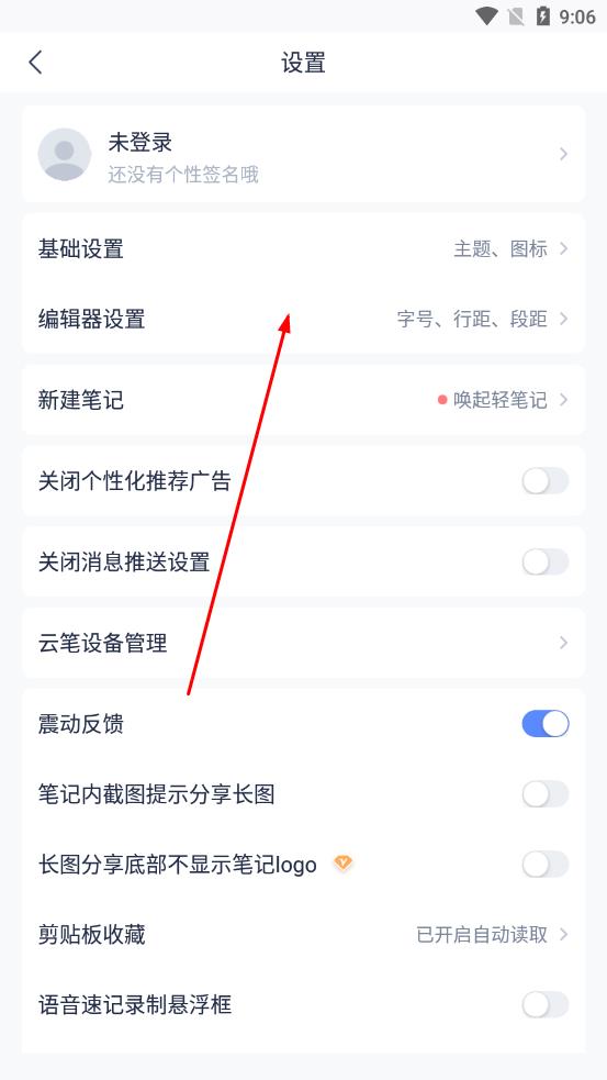 2、進(jìn)入設(shè)置界面后,點(diǎn)擊編輯器設(shè)置選項(xiàng),進(jìn)入格式設(shè)置頁面。